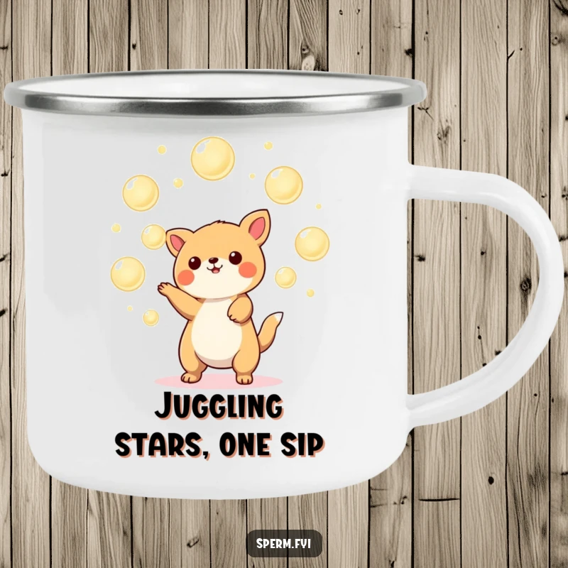 Funny Kawaii Juggler Camping Mug: Sturdy Orb Balancing Act, Ideal Funny Gift for Outdoors